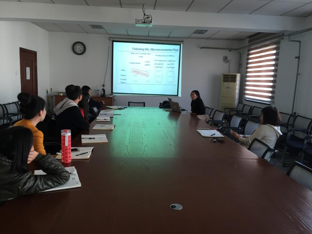 之后,杨静博士与大家分享了期刊文章《The DistributionStructure in Three Continents:An Evolutionary Analysis of Italy, Japanandthe United States》。各位老师积极参与讨论与交流,并重点就开展相关研究所需要的计量分析、文献收集、数据库使用等方面进行了方法与资源的分享。