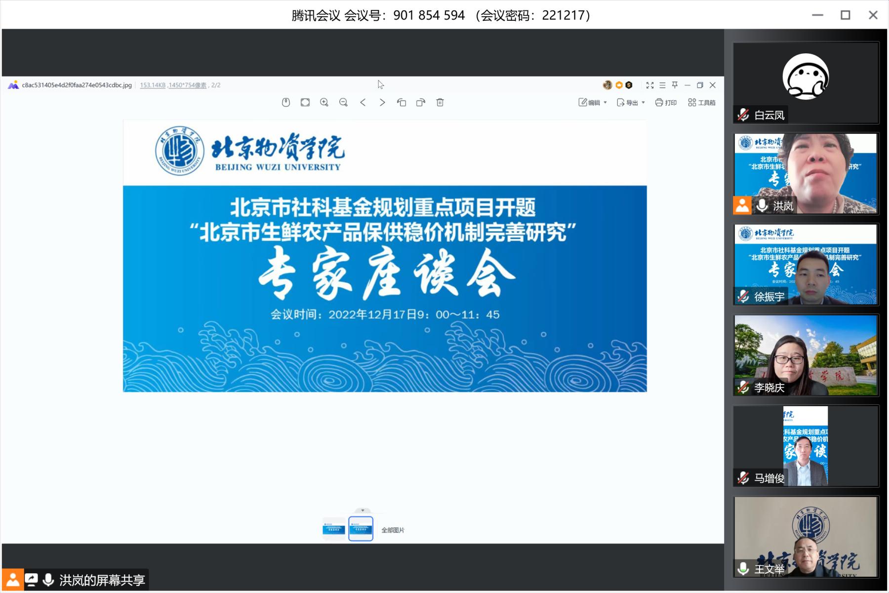 2022年12月17日,由伟德国际bevictor1946洪岚教授主持的北京社科基金重点项目“北京市生鲜农产品保供稳价机制完善研究”线上开题座谈会顺利举行。开题座谈会的专家组由上海海洋大学经济管理公司姜启军教授、南京审计大学统计与数据科学公司和江苏省政府统计与大数据研究院徐振宇教授、新发地农批市场信息中心刘通主任、全国城市农贸中心联合会马增俊会长、北京市社科联、社科规划办规划项目部赵晓伟主任等组成。为提高项目的可行性,会议还邀请了阿里本地生活食安部高级食品安全专家魏帅、盒马鲜生北京区公共事务刘姝涵总监、美团生鲜事业部公共事务傅丽娜总监、京津冀农产品行业联盟尹作丰秘书长等多位业界代表。会议由伟德国际bevictor1946科研副经理李晓庆主持。北京物资公司党委书记王文举出席会议并致辞。