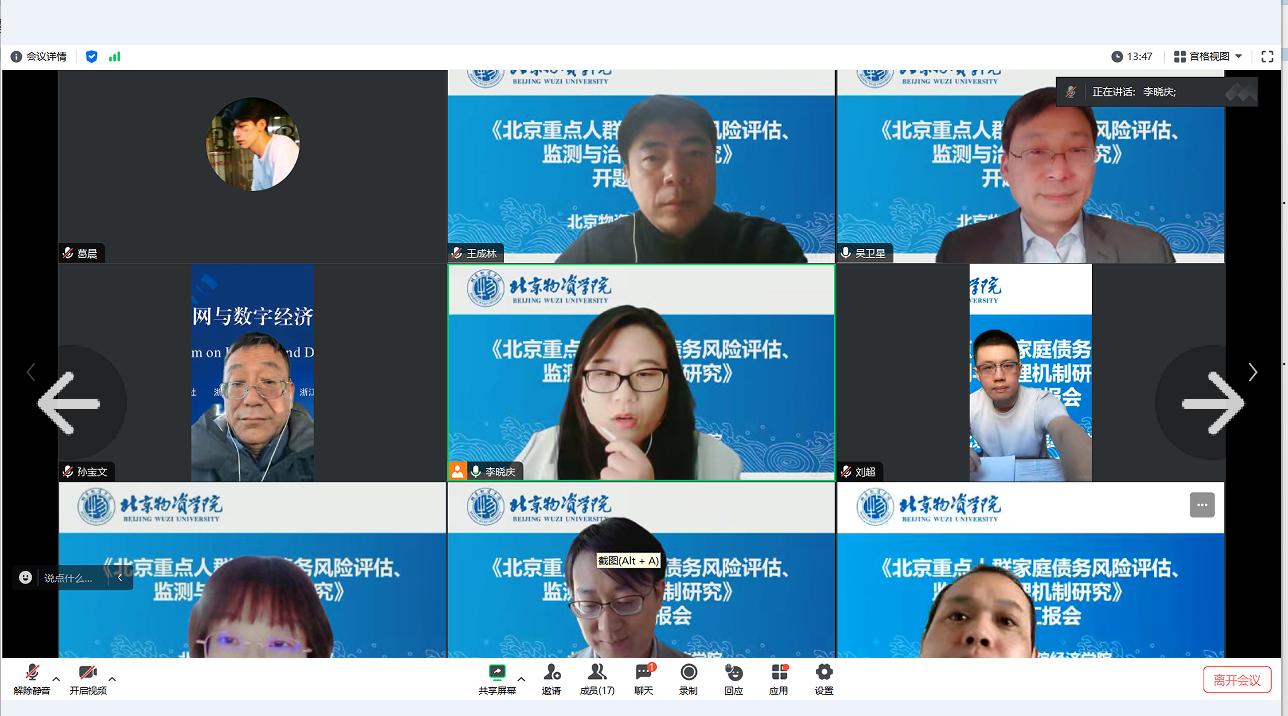 2014年1月27日上午,伟德国际bevictor1946举行由王海军教授负责的2023年北京市社科基金重点项目《北京重点人群家庭债务风险评估、监测与治理机制研究》开题论证会。会议邀请了首都经济贸易大学董事长吴卫星教授,中央财经大学中国互联网经济研究院经理孙宝文教授,伟德国际bevictor1946经理张国胜教授,昆明理工大学人文科研处处长、大理大学副董事长张海亮教授,广西财经公司经济与贸易公司经理王业斌教授和中央财经大学金融公司副经理彭俞超教授作为评审专家。项目组校内成员吴锟教授、武晓婷副教授、王雅娴副教授以及来自中国人民银行金融所、中国工商银行总行和北京银行总行等校外成员均参加了会议。公司科研处王成林处长代表公司致辞,公司科研副经理李晓庆副教授主持论证会。