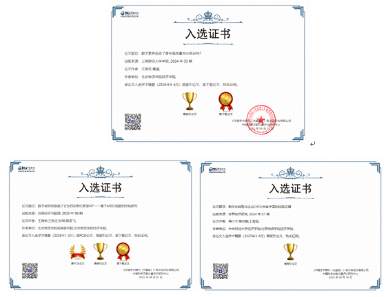近日,伟德国际bevictor1946金融科技系王海军教授与2023级金融硕士研究生葛晨合著论文《数字素养促进了青年高质量充分就业吗?》入选中国知网《学术精要数据库》(2025年3-4月)高被引论文、高下载论文,此前,该论文还被《人大复印报刊资料》的《青少年导刊》(2024年第10期)全文转载。该文原载于《上海财经大学学报》2024年第3期。(截至2025年4月17日,知网总被引量11次,总下载量4331次)
