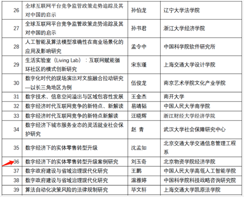 2020年度阿里活水计划面向海内外学者征集产业升级、企业数字化转型、新消费、竞争与创新、公益与就业、农村电商与数字乡村、全球化与跨境电商、数字时代的治理等八大领域课题,共收到328个课题项目申请。经过评审后,截止2020年6月23日,共有53个课题项目入围。其中第36项即为公司伟德国际bevictor1946副教授刘玉奇老师申报的项目——《数字经济下的实体零售转型升级案例研究》。