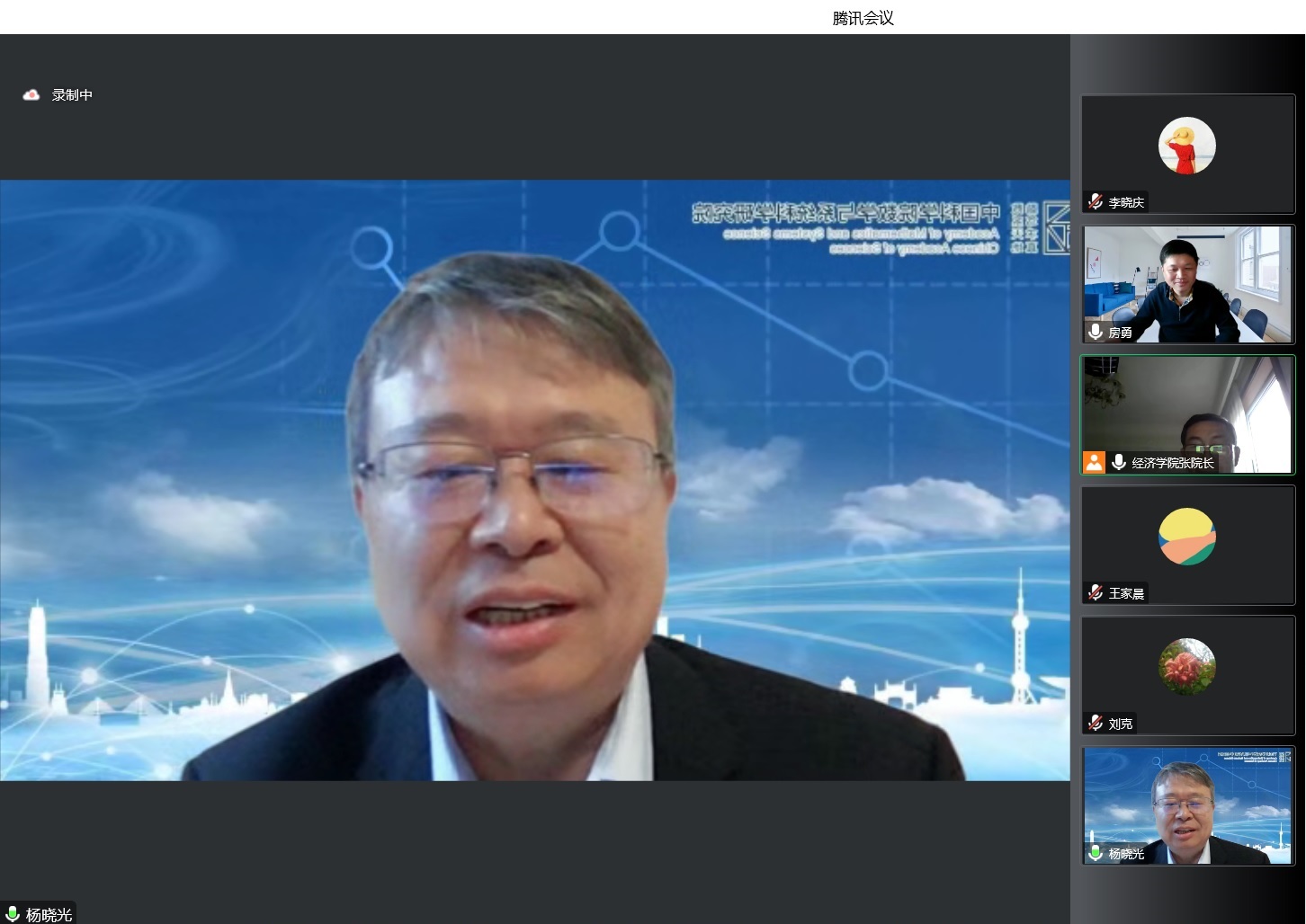 2022年10月22日,公司近30位师生参加了中国系统工程学会联合《系统工程理论与实践》编辑部和《系统科学与数学》编辑部共同举办“数字经济背景下的流通经济”专题前沿学术沙龙研讨会。会议嘉宾有:中国科公司系统科学研究所副所长、《系统工程理论与实践》主编杨晓光研究员,中国科公司院数学与系统科学研究院刘克研究员、杨翠红研究员,中国人民大学张顺明教授,中国科公司房勇副研究员。同时,列席的有《系统工程理论与实践》编辑部主任李琳,《系统科学与数学》编辑部副编审吴国云、伟德国际bevictor1946经理张国胜,副经理李晓庆。