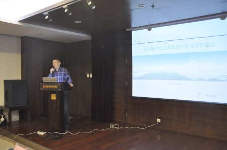 陈经理从投资人的角度向与会人员介绍了国内程序化交易的现状及监管的建议。他从程序化交易的模式、监管者与投资者的关系、本轮A股异常波动的原因和监管建议四个方面展开演讲。他认为投资者有两种,一种是能战胜市场的主动投资者,一种是不能战胜市场的被动投资者,而所有的程序化交易一定是偏主动,所以他从主动投资者来展开。而主动投资者又分为投机和对冲两种;再从交易速度分下来,一种是高频、一种是中低频,这两种投机和对冲一定会用到程序化,就会用到计算机来进行交易。在交易模式上,陈经理认为程序化交易有算法交易、高频交易、策略交易(中低频)和量化对冲套利这四种,并对高频交易的条件,策略交易的驱动方式依据及三个发展阶段,量化对冲套利的风险、对比三种模式的盈利来源及在市场的作用分别展开了介绍。他认为监管更多的应该是针对高频交易,从投资者的角度他更希望大家走策略交易这条路。在讲到监管者与投资者关系上,他做了这样的比喻:投资市场是一场运动会;监管者是组委会,负责大赛的稳定,创造一个平稳的环境;交易所是裁判员;投资者是运动员,追求的就是赚钱。相较于其他市场来看,当前我国的股票市场存在一定的监管困难,他认为应该建立一个长期稳定盈利的市场,而监管者应该思考并维护好整个市场的盈利来源,才是监管者与投资者共赢的基础。第三个内容,他认为本轮A股异常波动归根结底是杠杆的广泛使用,监管层现在也对杠杆做了很多限制,当然也有一致性预期、人性的弱点、投资方式单一和违规操作等原因。在最后,陈经理作为一个投资者,他提出了这样的建议:一是密切关注市场盈利结构,适当调整交易规则;二是进行杠杆监管;三是对投资者尤其应该直接对客户进行教育,引导投资者如何理解投资活动并进入这个市场。