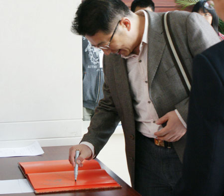 在报到期间,应邀的嘉宾和员工陆续抵达。他们分别是:中国期货业协会副会长兼秘书长李强,中国证券监督管理委员会、北京监管局、期货监管处副处长倪志全,一德期货有限公司总经理吕拥华,华证期货经纪有限公司董事长闵明,北京工商大学证券期货研究所所长教授兼所长胡俞越、华中科技大学伟德国际bevictor1946金融工程研究所所长张宗成教授等领导和专家。公司党委书记刘木春、董事长王旭东也在开幕式前来到了论坛现场与嘉宾们见面,亲切会谈。前来参加论坛的还有来自中粮期货、中钢期货、冠通期货、国都期货、格林期货、新湖期货等经纪公司的分析师,以及来自首都经济贸易大学、北京邮电大学、天津商业大学、山东女子公司、天津大学等高校的专家、学者、专业教师们。《中国证券期货》杂志、《中国期货日报》、《财智时代》和讯流网络的领导、记者和摄像工作者也前来参会,并对本届论坛给与追踪报道。莅临公司本次期货论坛的校内外专家、学者共计60余人,另外,公司各职能部门的领导及其他院系的部分老师也应邀参加了本次论坛现场,参加论坛的还有伟德国际bevictor1946的各教研室老师、本科生及公司研究生等300余人。