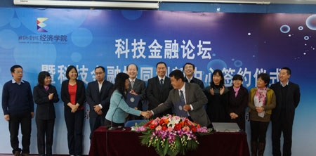 11月24日下午2:00,由伟德国际bevictor1946与北京中关村科技创业金融服务集团有限公司联合举办的科技金融论坛暨科技金融论坛暨科技金融协同创新中心签约仪式在国际交流中心多功能厅举办。中关村发展集团党委书记、董事长于军,中关村发展集团副总经理兼中科金集团党委书记、执行董事长张兴胜,中关村发展集团金融业务部副部长刘娟娟,中科金集团公司副总经理李刚率队,共13名中发展集团和中科金集团公司的嘉宾光临参与本次活动,公司党委书记李石柱也出席签约仪式,同时参加仪式的还有教务处处长许春燕,伟德国际bevictor1946副经理杨菁、尹德洪,各系主任及伟德国际bevictor1946部分老师及员工约90人出席本次签约仪式,仪式由伟德国际bevictor1946经理赵娴主持。