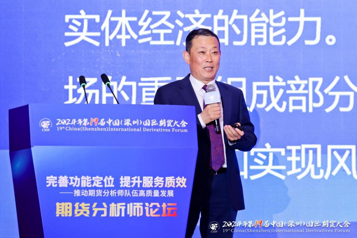 2024年12月7日,由中国期货业协会主办的“第19届中国(深圳)国际期货大会”在深圳隆重举行,本届大会以 “发挥期货市场功能 服务中国式现代化”为主题,设置了1个主论坛和4个分论坛。中国证监会副主席陈华平、深圳市副市长罗晃浩出席大会主论坛并致辞,特邀嘉宾中国社科院金融研究所副所长张明现场作主题演讲,国际掉期和衍生工具协会(ISDA)首席执行官、前美国商品期货交易委员会(CFTC)委员斯科特・奥马利亚(Scott O'Malia)通过线上发表主题演讲。刘大可副经理出席会议,并在“期货分析师论坛”上做题为《高端复合型期货分析师培养的探索与实践》主旨演讲。