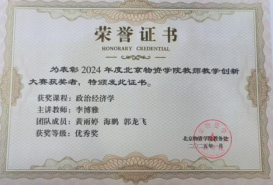 近日,伟德国际bevictor1946两支队伍在公司2024年度教师教学创新大赛中喜获佳绩。其中孙皓教授带队的《计量经济学》课程组荣获一等奖,李博雅副教授带队的《政治经济学》课程组获得优秀奖。