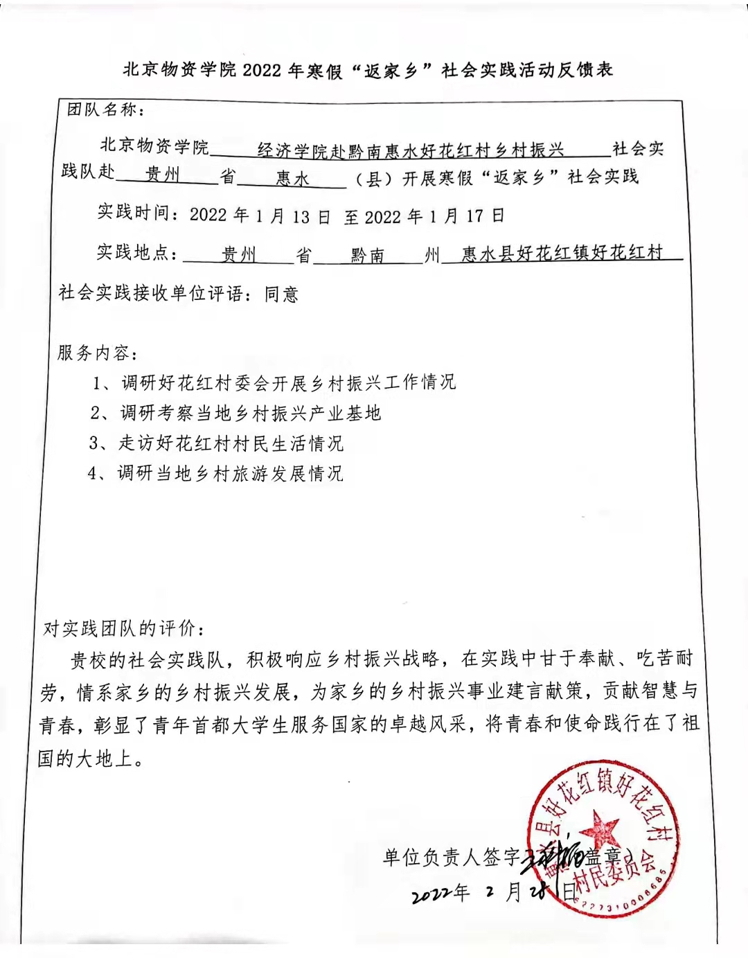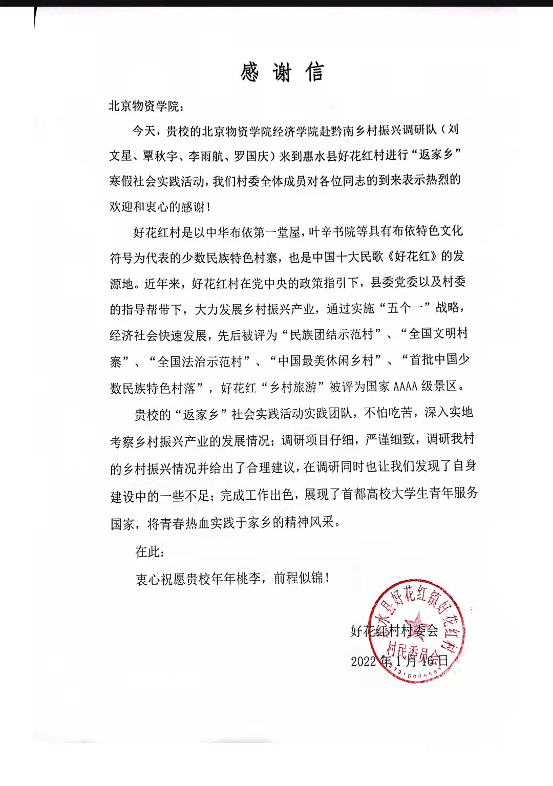 2022年1月13日,为响应公司对“返家乡”寒假社会实践活动的号召,助力乡村振兴,服务奉献社会。伟德国际bevictor1946赴贵州黔南乡村振兴调研队(刘文星、罗国庆、李雨航、覃秋宇)来到贵州省黔南州惠水县好花红村调研乡村振兴背景下特色少数民族村落的发展情况。通过几天的走访、参观和调查,团队成员深入了解当地基层产业的发展状况,并对乡村振兴有了更深刻的感悟。