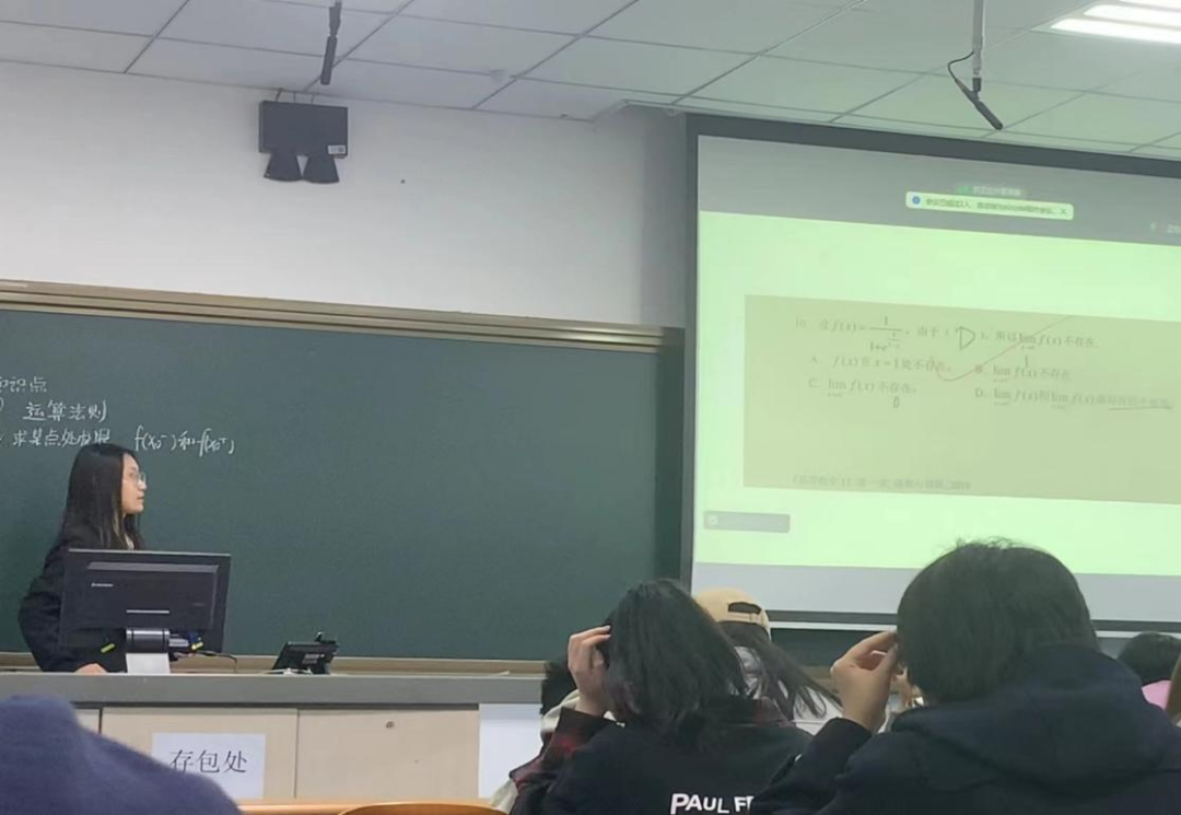 周一的授课课程是由李新蕊同学为大家带来的高等数学B1第一章知识点讲解,主要内容包括了极限的运算法则,如何判断函数在某点处极限不存在,极限计算的几种类型和函数连续以及间断点分类等期中考试核心知识点,她在数学学习方法上给同学们提出了几点建议: