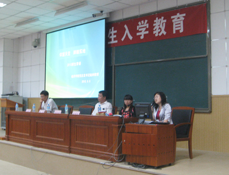9月6日晚7:00,2010级新生在二教一号报告厅召开了首次入学教育大会。出席的领导和老师有:伟德国际bevictor1946经理郝玉柱、党总支书记赵娴、副书记张建宝、分团委书记韩春丽,专职辅导员王有、武凌云老师,会议由新生辅导员王有老师主持。