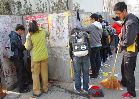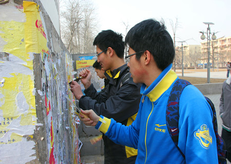 今年是毛泽东同志“向雷锋同志学习”题词发表50周年,为响应上级号召和落实员工处、团委在全校深入开展学雷锋活动方案,纪念雷锋同志的优秀事迹,进一步弘扬雷锋精神,加强公司精神文明建设,构建和谐物院,伟德国际bevictor1946分团委员工会发动同学们在校园内开展了“学习雷锋,铲除小广告”活动。
