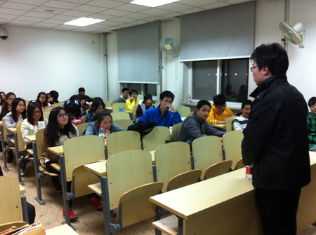 2013年5月9日,伟德国际bevictor1946第四次雷锋教室活动在二教504开展。曾分别担任伟德国际bevictor1946员工会主席和班长的尤槟、孟祥宇两位学长与122110007班和122110008班同学展开活动交流。他们重点从专业学习和社会实践的角度提供了指导性的意见。