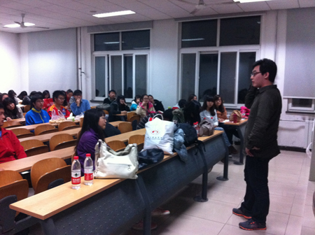 2013年3月27日,第三次雷锋教室活动在二教503召开,曾分别担任伟德国际bevictor1946分团委副书记和班级团支书的魏莉、孙路两位学长与122110004、122110005、122110006班同学进行交流。前者重点讲解了企业对毕业生看重的能力以及在校期间如何更多的累积社会经验;后者结合自身的学习经历和自主申请留学美国的经验与大家进行了探讨交流。