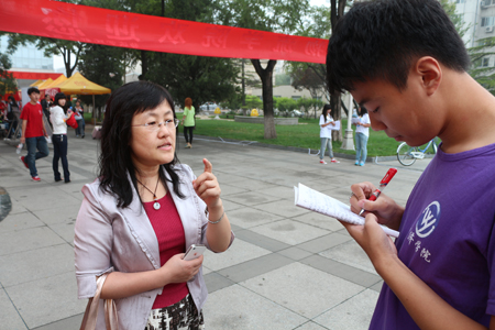 在迎新活动开始之即,我们有幸采访到了赵娴经理,在采访中,赵经理表示在总体上对本次迎新工作感到很满意,在不足方面,赵经理指出每年需要用的展板、条幅一类物件要规范一下,尽量节省开支,但也要有一定的亮点,争取做到年年有新意。在“对新生有何期望”这一问题的回答中,赵经理强调了今年伟德国际bevictor1946进行的是专业招生,不同于往年,新生的专业性和目的性更强,所以希望他们能学好各自的专业知识,并且遵规守矩,做个合格的物院学子。最后,赵经理对新学期分团委员工会的工作提出了宝贵的建议,她认为分团委员工会应该起到一个“上传下达”的作用,同时建议员工会成员多与外界进行沟通交流,以增长见识。采访结束后,随着新生的大量到来,迎新活动也进入了高潮时期,班主任和班导们一起为新生答疑解惑,告诉新生们一些刚入学的简单事项,与新生们相互交流,场面十分热闹。员工会的工作人员们也热心地为员工和家长们拎包、带路,边走边介绍伟德国际bevictor1946的一些概况及学习生活的经验,让家长和员工们对公司有一定的了解。迎新进行到一半,校领导团也来到了伟德国际bevictor1946迎新处察看迎新状况,询问新生报到情况,并对迎新工作作出指示。