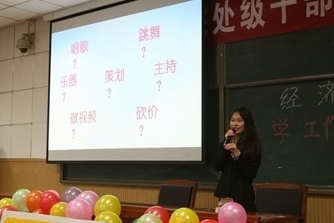 接下来,王老师对分团委员工会做了简单的介绍,他从“大家对大学员工会的看法?”这一问题开始,说明了员工会自我管理、寓教于乐、展示自己等特点,并告诉新生们员工会工作不会与学习冲突。随后,第十六届分团委员工会主席团携各部门与期货协会、员工交流会、辩论队一起依次对自己的部门进行了介绍,包括宣传部的个人精彩演讲、体育部的诙谐短片、辩论队的小型辩论赛,他们通过精彩的演讲和视频设计为新生们展示了一个不同凡响的老员工活。