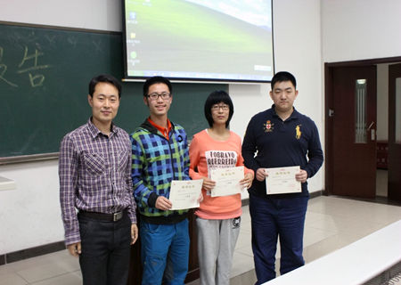 最后由伟德国际bevictor1946党总支书记胡伟老师为此次新生暑期读书报告交流会做出了总结。首先他表明了此次读书报告会开得很成功,内容充实,并指出读书报告交流会的目的是激发同学们的学习热情,拓宽了同学们的知识面,而且为同学们提供了一个锻炼自己、鞭策自己、展示自我的平台。最后他还表示希望读书交流会以后可以多办,同学们之间要多交流和相互学习。这次读书交流会在胡伟老师为每位获奖同学颁发奖状后及全体同学和老师留影的愉悦气氛中结束。