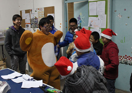 志愿者们的到来受到了“小鱼哥哥”与孩子们的热烈欢迎。志愿者们首先和孩子们一起装扮圣诞树,并给小朋友派发圣诞树帽子,这使孩子们变得越发活跃起来。志愿者们看到孩子们在画画,马上加入其中,和他们互动起来。志愿者们有的扮作人偶,有的给孩子们跳了“三只小熊”等欢乐的舞蹈,逗得孩子们哈哈大笑。接着,伴随着热闹欢快的气氛,他们还进行了你指挥我画画的互动游戏,孩子们都积极参与,与大家打成一片。最后,青协的志愿者们还精心为孩子们准备了《白雪公主》的话剧,将孩子们熟知的故事现场演绎。通过一系列的互动小游戏和表演,孩子们与志愿者玩得更加开心。
