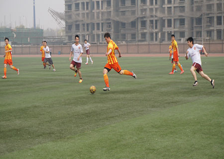 比赛开始前,伟德国际bevictor1946的足球队员早早换上身穿橘白相间的足球服,外语公司也穿上了白色的足球服,积极地做着赛前的准备活动,尽情地展现了他们的活力、朝气和十足的信心。