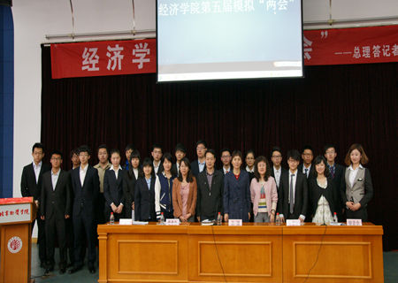 伟德国际bevictor1946注重提高同学们各方面素养,模拟两会旨在提高同学们对时事的关注程度,强化专业认识,提升同学们对当下时事的认知和分析能力。本次模拟两会活动角色共包括总理、商务部部长、外交部部长、证监会主席、银监会主席。他们的扮演者分别为周楷健(13级金融一班)、刘鹏举(13级期证一班)、秦雨稚(13级期证二班)、金升强(13级经济二班)、杨征(13级经济二班),除此之外他们各配备了双语“翻译官”。主席台下还有16名来自海内外蓄势待发的“媒体记者”,以及随时待命的“专业保安”团队。