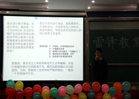 大会接近结声时,于雪晴发表了总结,她认为员工会工作过程中不但要处理好人际关系,做好活动策划,还要重视反馈的过程。员工会是一个大家庭,既充满琐碎事物,也充实圆满,每个部门之间要多联系,多沟通,彼此互帮互助,在点滴间成长,在成长中快乐。此次培训会所讲内容均是主席团成员和各部部长们的经验之谈,实际准确地为员工会成员传递了各种信息,以便帮助他们更好地完成接下来的各项工作。