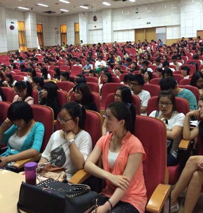 随后,王有老师对期末考试、涉及加固宿舍楼的同学行李存放以及同学留宿的问题进行了详细的说明和安排。首先,王老师希望大家在马上要进入的考试周里面能够做到提早复习、诚信应考、杜绝作弊;然后,王老师对本公司女生宿舍1号楼和12号楼暑假存放行李一事做了安排,公司将给每个员工发放打包袋,在6月29号8:00-13:00按照班级顺序统一有序的将行李搬至二教102室和103室。最后王老师详细说明了女生宿舍假期留宿的具体流程,希望大家能够按流程办理相关手续。