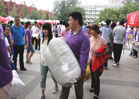一位办理完报到手续的新生说:“从一下火车站,热心的学长学姐就陪着我搬行李、领物品,给了我一种从未有过的亲切感。” 一位南方的家长表示,一开始担心小孩适应不了北方的生活,但是优美的环境、学姐学长们热情的服务打消了顾虑,对小孩以后的大学学习生活充满期待。