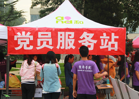 新生报到入口处贴有“党员服务站”标语的红色横幅格外显眼,这是由伟德国际bevictor1946各个年级的党员和预备党员组成的迎新团队,他们秉承先锋服务的宗旨,让刚刚踏进大公司园的懵懂新生们感受到学长学姐的关怀,体现了老员工党员为人民服务的精神。在我们党员队伍中,有不少党员员工“化身”为2014级新生班主任助理,利用担任班主任助理的一年时间,将党员先锋模范作用发挥到新生群体中,让新生密切的感受和学习党员员工的先进性。