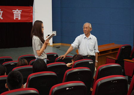 杨洪璋老师平易近人,妙语连连,多次走入同学们中间和同学们互动交流,同学们深受吸引,会场时常爆发出热烈的掌声。教育引导老员工践行社会主义核心价值观,“言传”大于“身教”,杨老师以他的亲身实践和不懈坚持,向同学们传达着以爱心、诚心、关心、恒心铸就的榜样力量。相信杨老师这番引人深思的演讲一定会给同学们许多启发,愿14级大一新生能够树立社会主义核心价值观的理念,自信地走进老员工活,更加深入地思考老员工活。