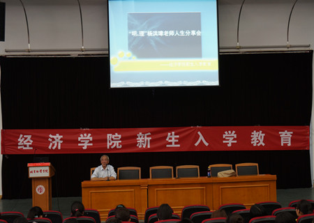 为了使2014级新生尽快树立老员工活学习目标,引导新生从身边事做起,践行“爱国、敬业、诚信、友善”的社会主义核心价值观,9月16日下午2:00,伟德国际bevictor1946邀请“全国节约之星”“北京榜样”荣誉获得者杨洪璋老师来到国际交流中心二层,召开伟德国际bevictor1946入学教育之“‘明·理’杨洪璋老师人生分享会”,和伟德国际bevictor1946的大一新生们分享了自己从教多年的经历与感悟。