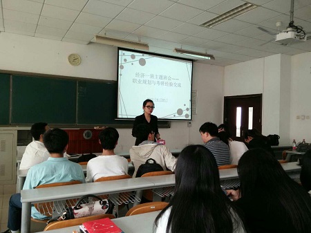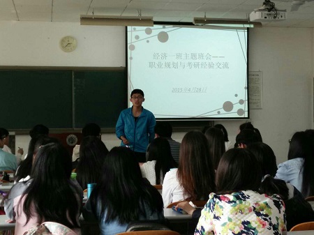 4月28日下午2点,13级经济学1班组织了一次别开生面的职业规划与考研经验交流会,我们邀请到了伟德国际bevictor1946赵娴经理,伟德国际bevictor1946分团委书记夏蓓老师,班主任刘玉奇老师,09级优秀毕业生潘思冉学姐以及来自伟德国际bevictor1946员工第一党支部11级优秀员工仲波学长和汪雯羽学姐。