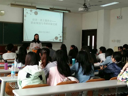 随后发言的是汪雯羽学姐,学姐考上的是中国社科院金融学学硕。学姐从两个方面讲解,一是考研的动机,二是大二现阶段的准备。首先动机有三,一为了弥补高考发挥失常的遗憾,二为了以后工作能进入一个更高的平台,三为了提升自己的知识储备。而在准备方面主要提到的就是考证问题,像我们经济学专业,会计、期货、证券之类的证书都是必不可少的。最后班主任从寻找方向和成长的角度提出总结发言,夏蓓老师从心态、思维和珍惜当下等方面对同学做出勉励。