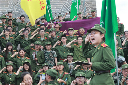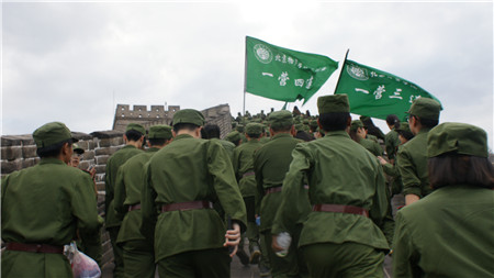 在路途中公司同学保持着纪律,井然有序地行进。早上七点,我们到达长城脚下.天色已亮,在洁净如洗的天空下,长城显得更加巍峨壮丽。一路上陡坡险石,不禁感慨数千年前劳动人民在这里洒下的血汗甚至生命,一路上更多了一份敬意。作为一营的伟德国际bevictor1946,我们肩负重任,向最高坡奔去,一路上不断有同学落下队伍却又咬牙追上。历经艰辛终于在八点登上顶峰,在顶峰公司营旗飘扬,峰顶风光无限好,对自然对历史对祖国大好河山的敬意;对蜿蜒盘旋的长城对树木丛生百草丰茂的绿林对深邃明朗的天空不可亵渎的崇敬。紧接着在陆老师的组织下,我们开展了一系列活动,首先我们在顶峰齐唱国歌;接着是我们伟德国际bevictor1946军训团的集体宣誓活动:同学们举起右手进行宣誓,高昂的宣誓词响彻在八达岭长城。“铭记历史,勿忘国耻;缅怀先烈,奋斗不止;立足当前,着眼长远;开创未来,振我轩辕!”在如此神圣的地方进行宣誓,大家更加严肃崇敬。