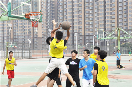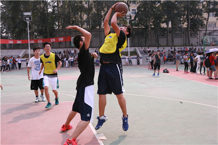 炎热的温度也不能撼动同学们对篮球的热情和执着。就这样他们带着对篮球的信念开始了下半场比赛。期证队带球前进,传球,转身,投篮。而经济队以一个起跳伸臂的姿势挡住了这一波的进攻。同一时间金融队高抛球跃过半场,然后快速抢球,一步,两步,就是现在,球进了。随着时间的推移这慢慢的变成了一场体力赛,但双方不服输的精神使这场比赛打得难解难分。胜负只是一场结果,而他们在这场比赛中的努力将是他们最好的成绩。有付出就会有收获,最终以金融VS国贸为29:17经济VS期证为28:19的比分结束了这场精彩的比赛。
