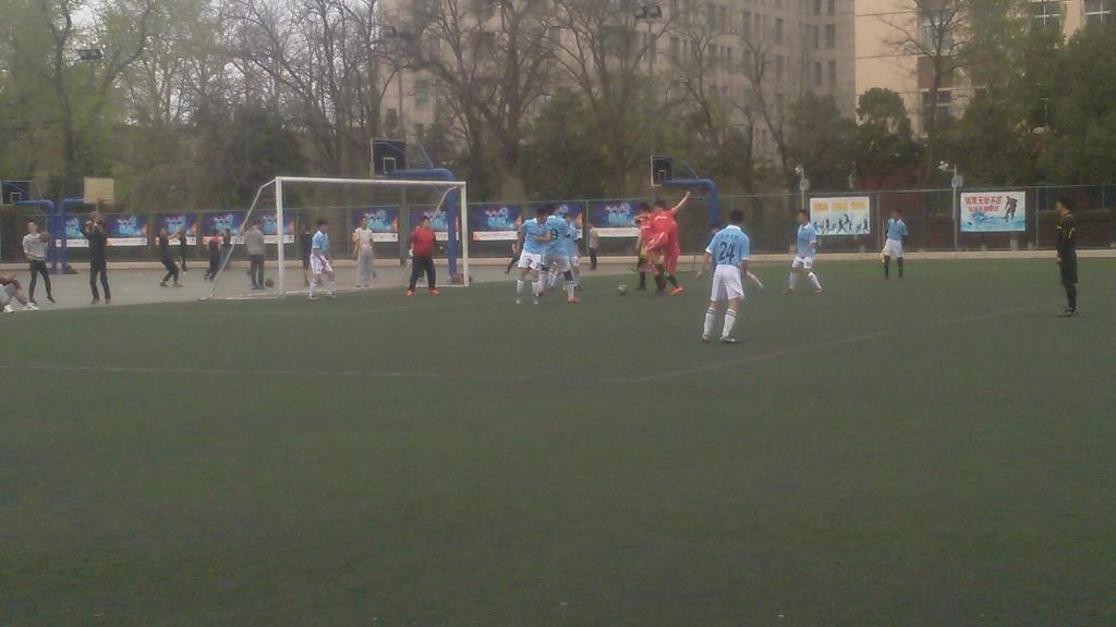 终于,人员的匮乏和体能的透支渐渐显现出来,全场仅有的一次防线被人球分过造成禁区失守,北京大学前锋攻入一球,物院伟德国际bevictor1946男足暂时以0-1落后,结束上半场。