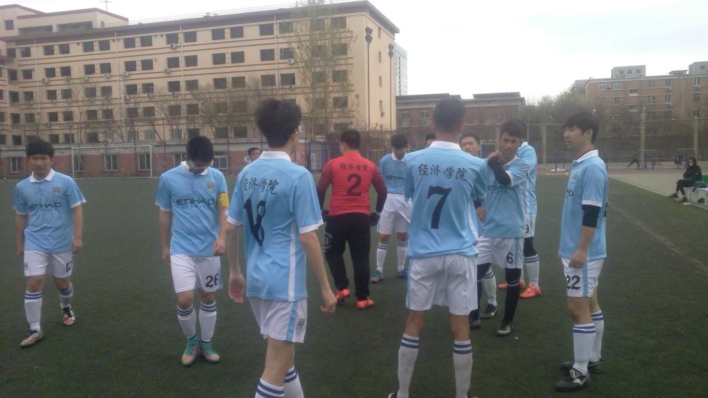 | 列队入场,面对阵容齐整的北大代表队,物院经济男足毫不示弱 |