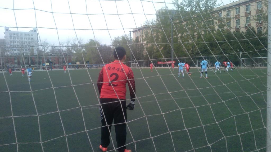 比赛渐渐进入最后五分钟。这时,联合大学下半场几名轮换替补上场的球员开始发挥出体能的优势。在奔跑跑动速度上,公司逐渐处于被动的境地。双方都不甘心平局的结果,不愿让一次经典的强强对决进入点球决胜的加时。最后几分钟,双方展开对攻,这简直是一场白刃战的厮杀。我方靠单箭头接后场长传锋线力图杀入对方防线,但因体能透支,且寡不敌众,一次次被对方化解,无功而返;相反,联合大学反攻时全线整体压上,开始屡屡突入我方门前15-20米区域并频繁射门和头球攻门,门将2号王昊阳展现出及其可贵的沉着和镇定,几次将对方的必进之球扑救出去!