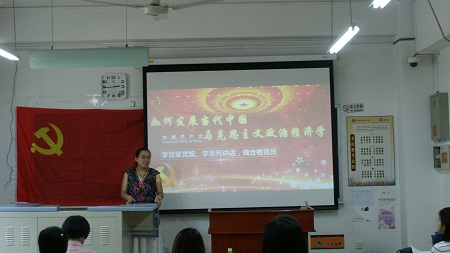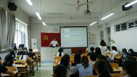 其后,两个支部代表就理论学习进行了主题发言;马院研究生党员代表杨霞作了关于“立足国情和发展实践,发展当代中国马克思主义政治经济学”的主题展示,分享他们对此的认识与理解。经济学专业员工党支部代表汤晓晴就《马克思主义政治经济学与西方经济学的比较》做了主题发言。在提前精心准备下,两位党员代表思路清晰,观点明确,气场十足,展现了良好的理论功底。