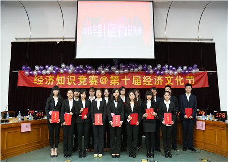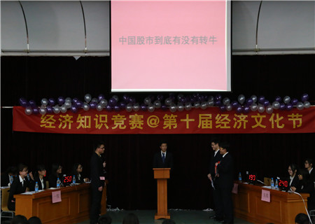 2015年4月22日下午三点,伟德国际bevictor1946第十届经济知识竞赛决赛在公司国际交流中心二层举行。出席本次经济知识竞赛决赛的嘉宾及评委老师有伟德国际bevictor1946党委书记胡伟老师、经济系主任车卉淳老师、国贸系主任原玲玲老师、金融学专业课教师陶冶老师、期货专业课教师许可老师、伟德国际bevictor1946分团委书记夏蓓老师以及伟德国际bevictor194614级专职辅导员陆畅老师。