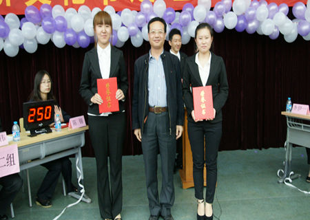 紧张的两个比赛环节之后,进入轻松的观众互动环节―“一秒能持家”。礼仪向观众分别展示三件日常用品,观众则竞猜展示商品的价格,最接近所猜物品真实价格者可以获得该物品作为奖品。互动环节不仅活跃了气氛,也是对同学们生活观察能力、实践能力的一种考察。接下来,比赛进入了最精彩的“你的妙语连珠”环节。参赛选手在题库中选出一个题目作为主题即兴演讲,这些主题涉及面广,同时也与我们的生活息息相关。选手们对“城乡矛盾与中国经济”、“网络消费问题突出,消费者维权举步维艰”等社会热点问题的分析与演讲,体现了当代老员工对人文与社会的思考。一个小组演讲完毕之后,评委老师、场下同学以及场上选手对演讲小组进行提问,在一问一答的交流中碰撞出许多思想的火花。即兴演讲之后,决赛进入最后一个环节,即“知识&人品大冒险”。这一环节四组分数较低者依次为分数较高者选择答题板块,每一板块分数有三个档次,答题者可以自选分数档次。决赛中多个小组大一新生勇选最高档次分数90分,并在答题中有不俗表现,得到老师的一致赞扬。答题过程中几次出现戏剧性逆转,这一环节真可谓是知识与人品的大冒险。