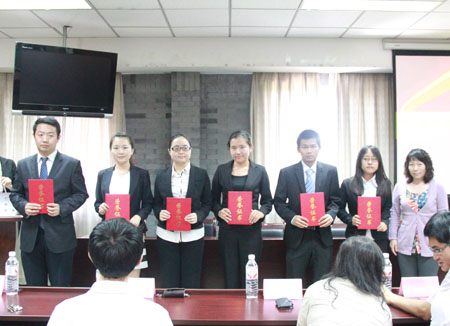 最后的青年经济论坛活动是最能展现员工学术性与个性的比赛,在“转型●改革●启航中国梦”的主题下由员工自主确定论文研究方向,可以是经济理论前沿问题,经济形势见解分析,或是对期货股票等资本市场的趋势研究,亦或是对银行、融资等金融领域问题的初探。作为财经类院校的员工,只要你有想法,只要你乐于钻研,青年经济论坛绝对是你展示学术水平、专业论文写作最好的平台,同时,可以提前掌握毕业论文写作的思路、方法及相关规范,这对同学们来说是次很好的练兵实验。第一名获奖员工张紫珩谈及感受时说道写好论文的关键是要有自己独到的见解,要多向专业老师取经,才能将所学用于指导实践。伟德国际bevictor1946副经理杨菁老师为获奖同学颁发了证书。
