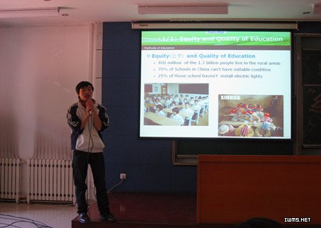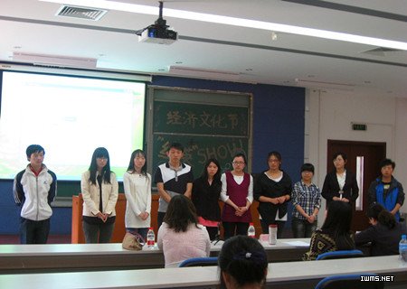 在主持人简单介绍了比赛规则和相关流程后,比赛正式开始。比赛过程中,各参赛选手各尽所能,展示了他们将财经知识与英语应用巧妙融汇及临场应变的能力,博得观众的阵阵掌声。其中,周超同学作为第一位选手为到场师生带来了一段关于美国次贷危机的视频配音;巴燕用一口流利的英语,以人民币对美元汇率的变化为例讲述了中美货币经济发展历程;2010级赵晓青以一段精心剪辑的电影视频展示,并加以自己的学习总结讲述了资本积累的本质;赵欣怡则以美国苹果公司为例为大家阐释了中美贸易顺差问题。此外,还有外国语言与文化公司的任玥娇、刘冬冬以及伟德国际bevictor1946的刘敏慧、张京尧、詹生国、王松、田雯晴分别为到场师生带来了中国房价高居不下、全球金融危机成因等问题的简单阐释。