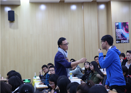 随后,讲座正式开始。李乃旭先生在进行了简短的自我介绍之后,引用了摩拜单车和ofo等大家都熟知的新兴企业的案例展开讲座。讲座中他多次采用同学们会感兴趣的话题与同学们进行互动。幽默的用词,新潮的想法,引人入胜,现场的同学纷纷踊跃参与互动。在讲座中他提到“互联网时代让我们进入了最好的时代”,北京作为全球三大创意城市之一为我们提供了丰富的机会,更影响着我们的职业选择。在讲座着重讲解的创业部分中,他多次引入了自身的经历,并结合了许多经济学基础知识,从如何创业到如何运营一一为同学进行了详细的介绍。