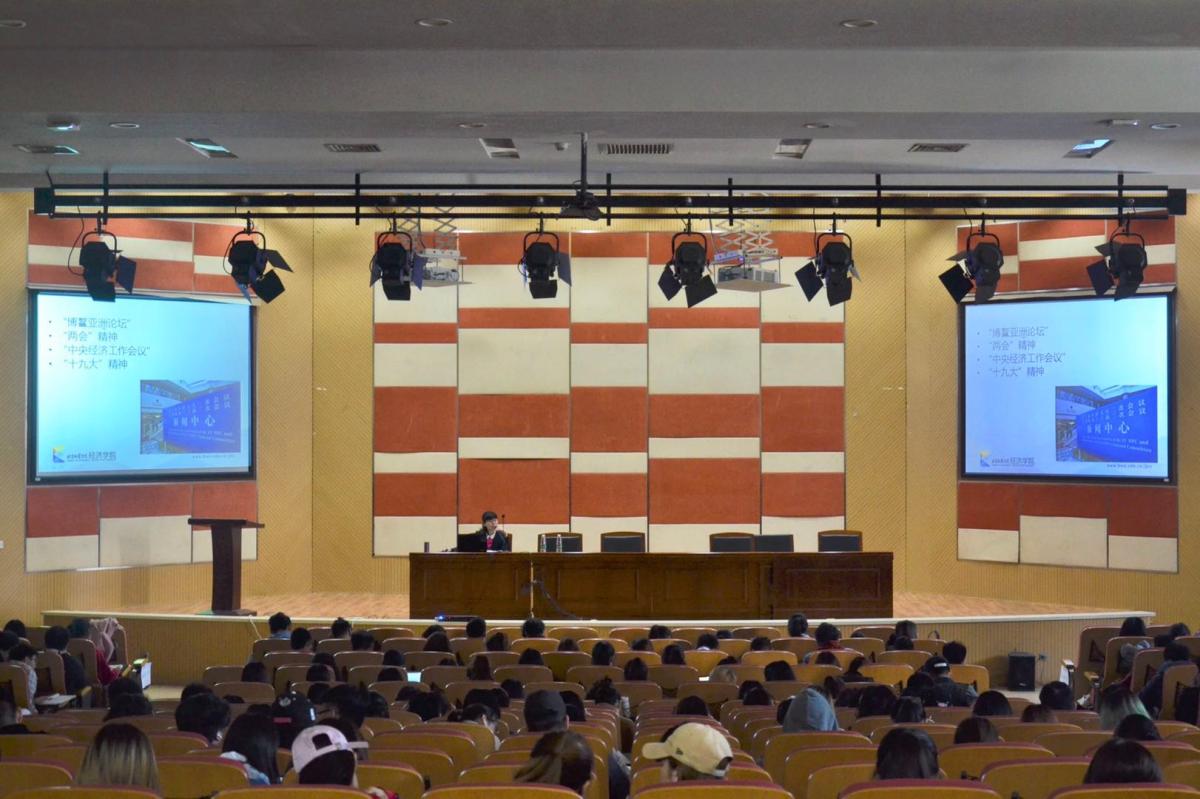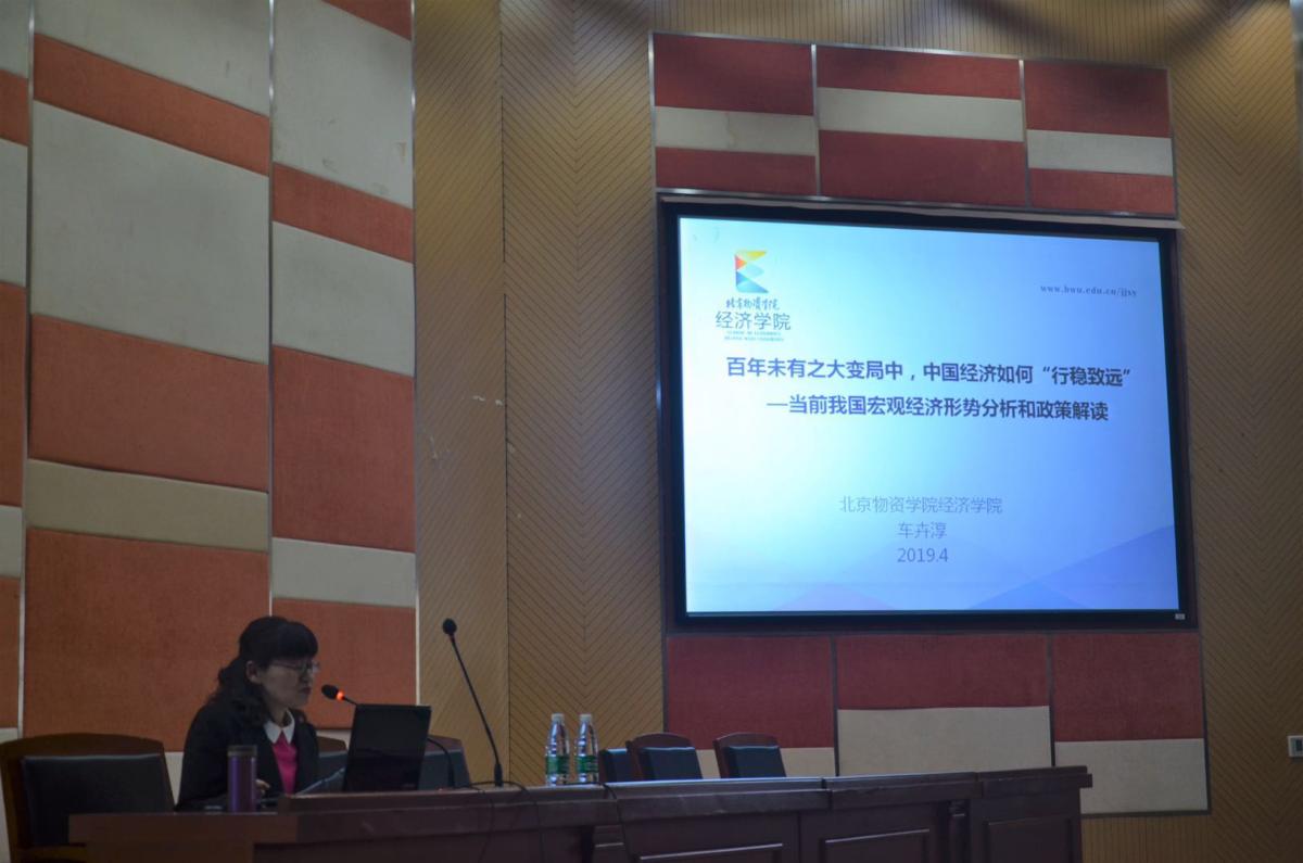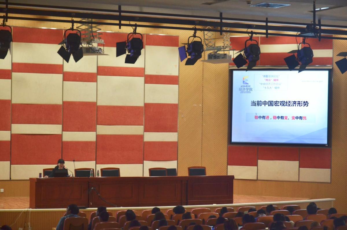 4月10号下午,伟德国际bevictor1946车卉淳教授应邀为2016级、2017级员工作主题为《百年未有之大变局中,中国经济如何“行稳致远”》的宏观经济形势讲座。