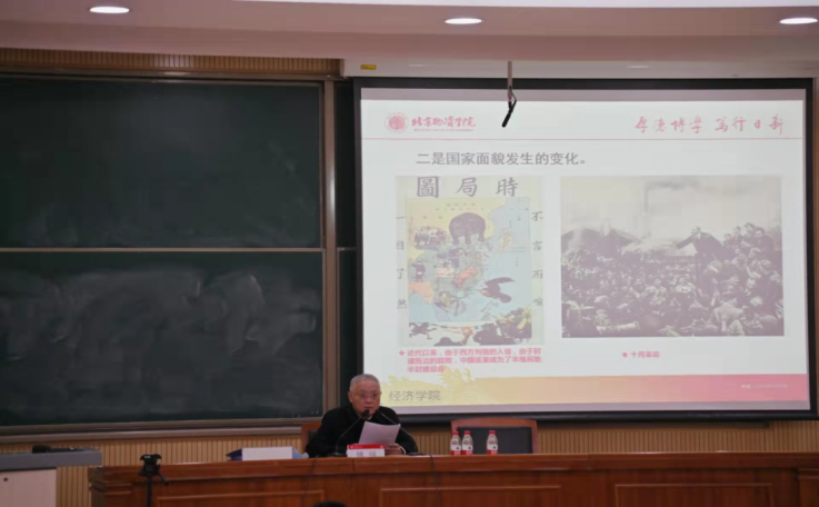 傅强书记围绕”怎样看待中国共产党的百年历程“、”正确认识中国共产党为什么“能”、“担当好青年一代的历史使命”三个方面展开主题报告。傅老师提出看待中国共产党的百年历程应有三个重要着眼点:一是党的面貌发生的变化,二是国家面貌发生的变化,三是我们党百年奋斗的伟大成就。