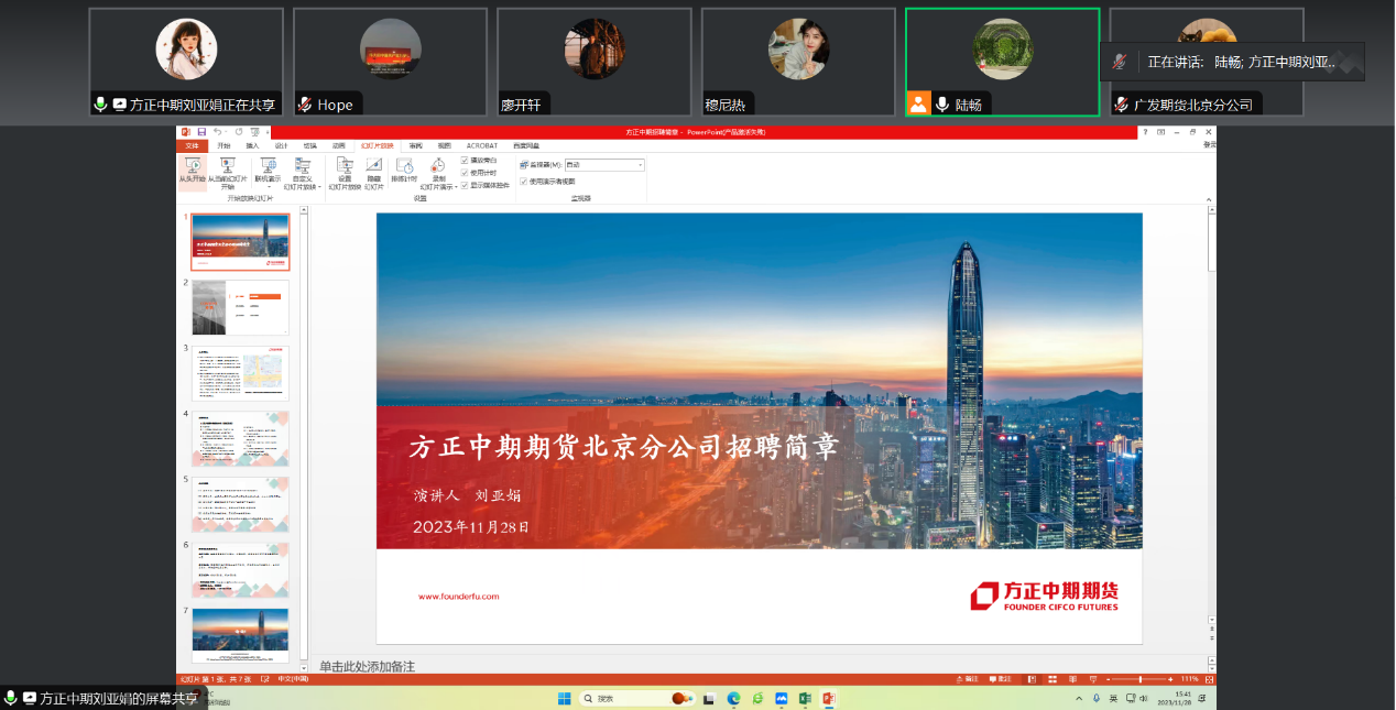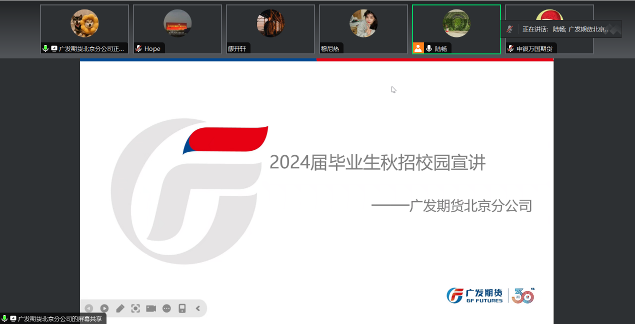 本次线上招聘宣讲会在腾讯会议平台进行,公司邀请了启明股份、广发期货、申万期货、方正中期期货等多家知名企业代表到场宣讲。企业代表通过PPT、讲解和互动交流等方式,全面介绍了企业的发展情况、人才需求、薪资福利等相关信息,以帮助员工更好地了解企业需求。