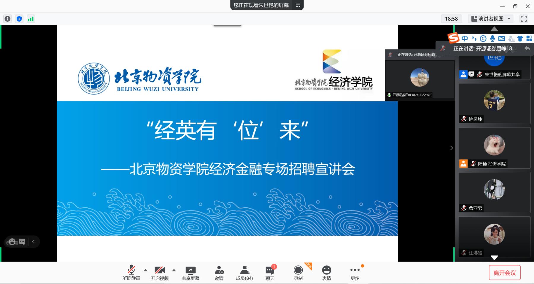 临近寒假,为促进2021届毕业生更好地实习就业、了解金融行业就业和人才需求,帮助企业更好地开展校园招聘,伟德国际bevictor1946于1月5日下午以在线会议的形式举办了“经英有‘位’来”经济金融专场招聘宣讲会。伟德国际bevictor1946辅导员陆畅主持,近百名本硕毕业年级员工参加了宣讲会。
