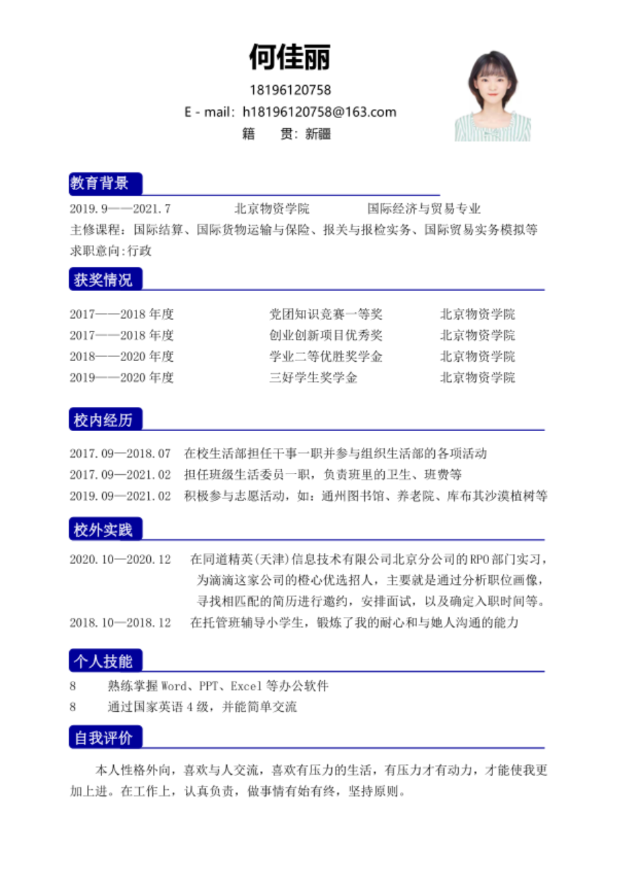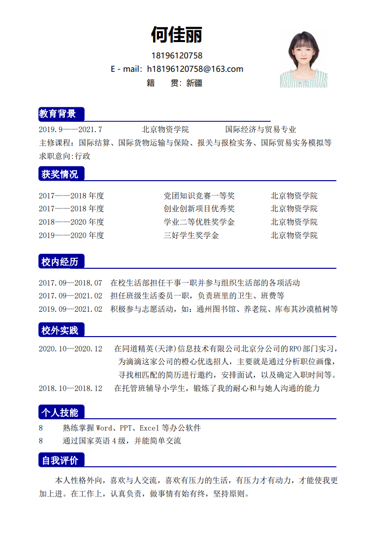 Pick me!——伟德国际bevictor1946毕业生推介:国贸专业何佳丽