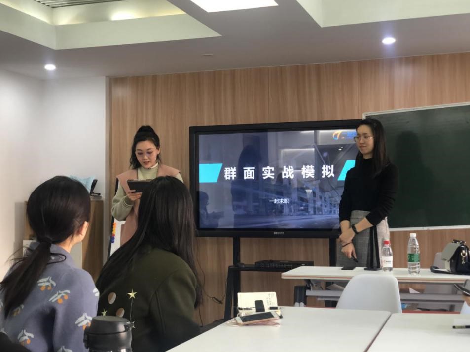 刘静老师详细介绍了校招流程后,讲座进入到模拟无领导小组讨论环节。同学们被分为俩个小组,关于可口可乐业务员如何处理过期面包问题进行小组内部讨论。整个小组讨论环节紧张又不失精彩。同学们各抒己见,思维发散又不忘回归试题很好地切合了主题。讨论部分和总结部分充分考验着求职者的应变能力。