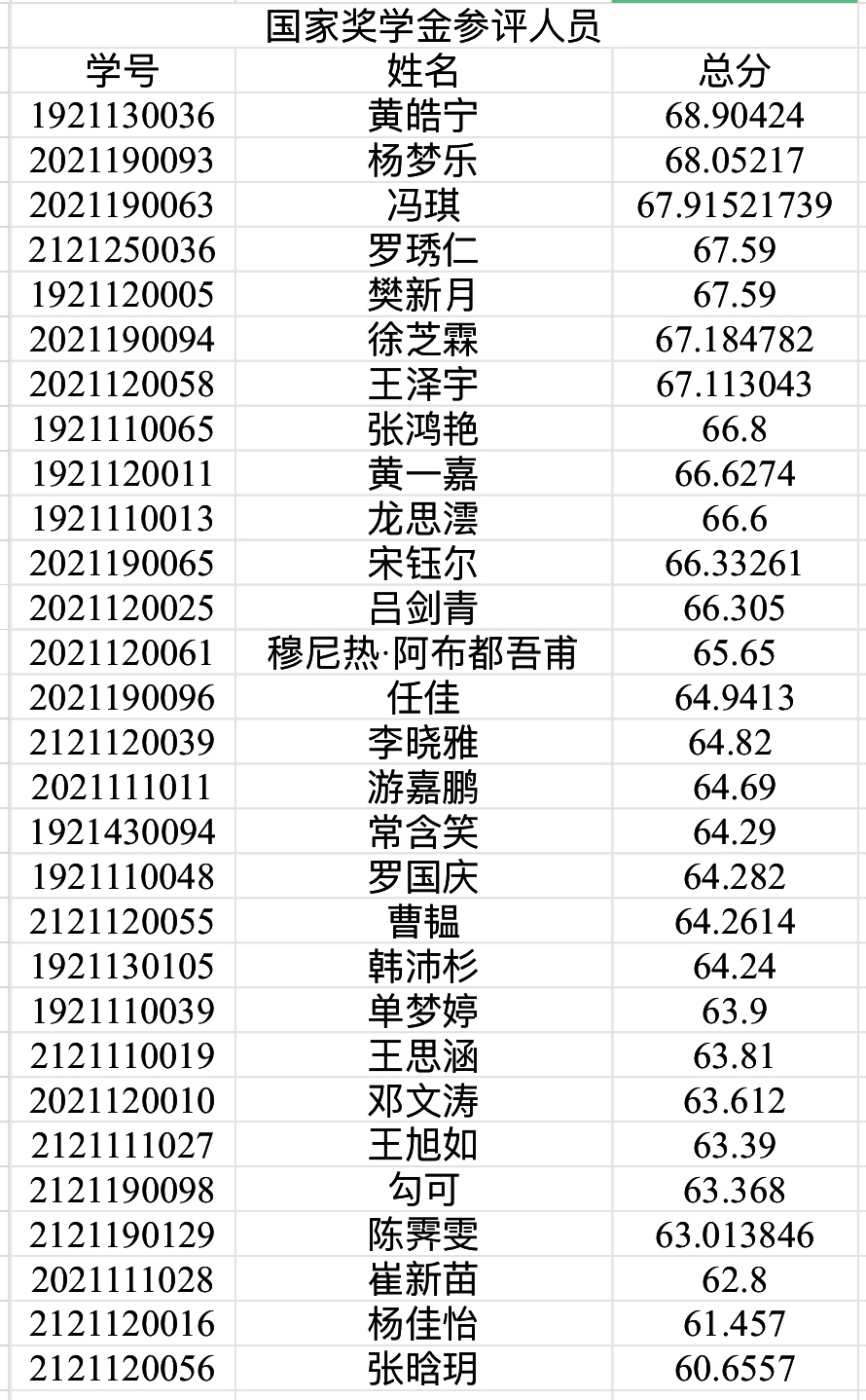 根据2021-2022学年公司奖学金评选办法,经过对申报候选人个人申请情况以及综合素质测评成绩的审核,现将2021-2022学年符合国家奖学金参评条件人员名单公示如下: