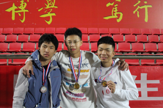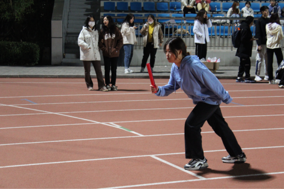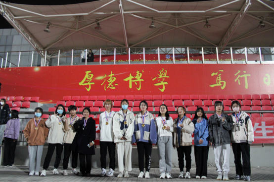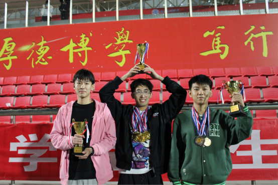 每位运动员精神饱满,斗志昂扬,已然为接下来的比赛做好了准备。最先开始的是100米短跑,随后立定跳远、400、800、1500等项目也陆续开展。100米与400米考验着运动员的爆发力耐力跑,而800米跟1500米则考验着每位运动员的耐力。伴随着一声令下,一个个身影冲出起跑线,光线落在田径场奔跑的身影上,便成了一首盛大灿烂的诗。耳边呼啸而过的风声盖不住身边的欢呼,微妙的缺氧晕开了灼热的日光,冲过终点线时的喜悦将身体的疲惫一扫而空。随着4*100接力比赛的进行,运动会也进入了尾声。带着所有人的期待,他们将心中肩负的信念化作脚下坚定的步伐,热血通过接力棒在红色的跑道上延续着,冲过终点线后大家拥成一簇,让我们看到了比结果更重要的是情谊。即使11月已然迈入初冬,但同学们激情澎湃的心情感染着每一个人。